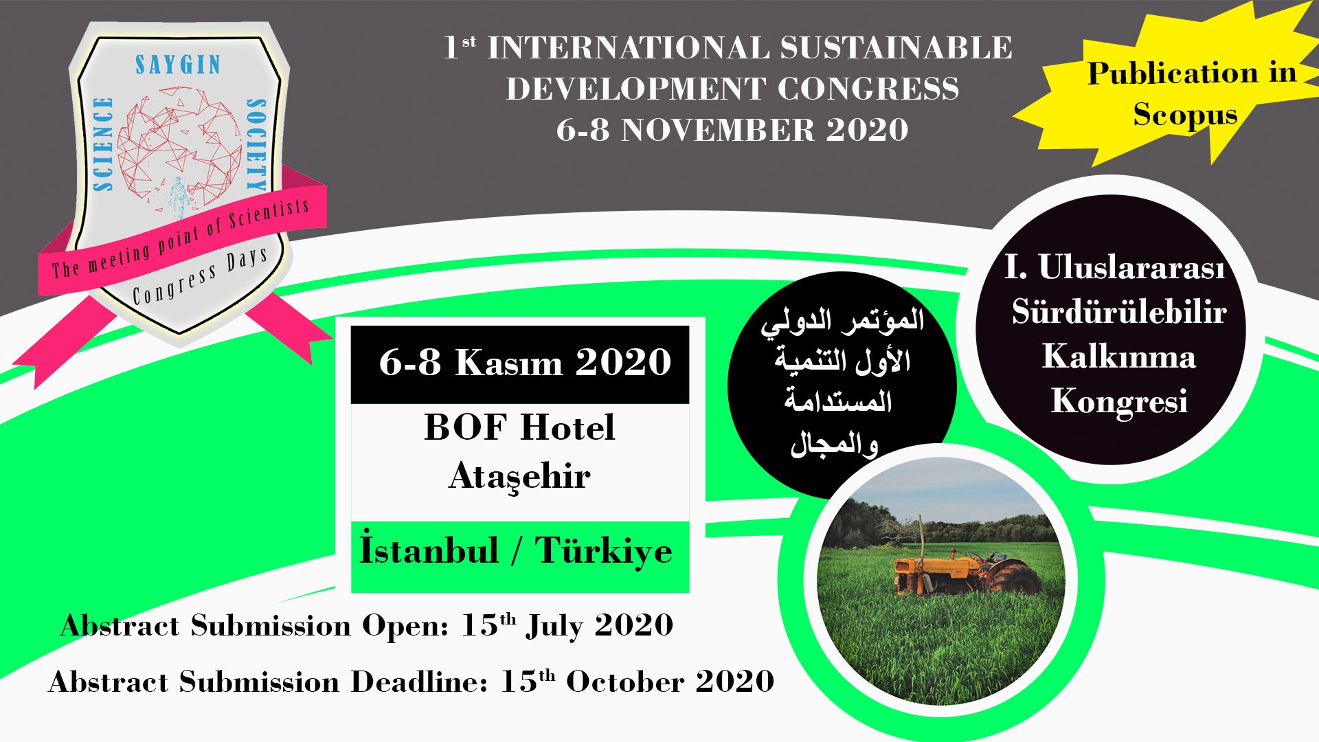 - The 1st International Sustainable Development Congress will be held at the Porto Bello SPA Hotel in Antalya on 06-08 November 2020.